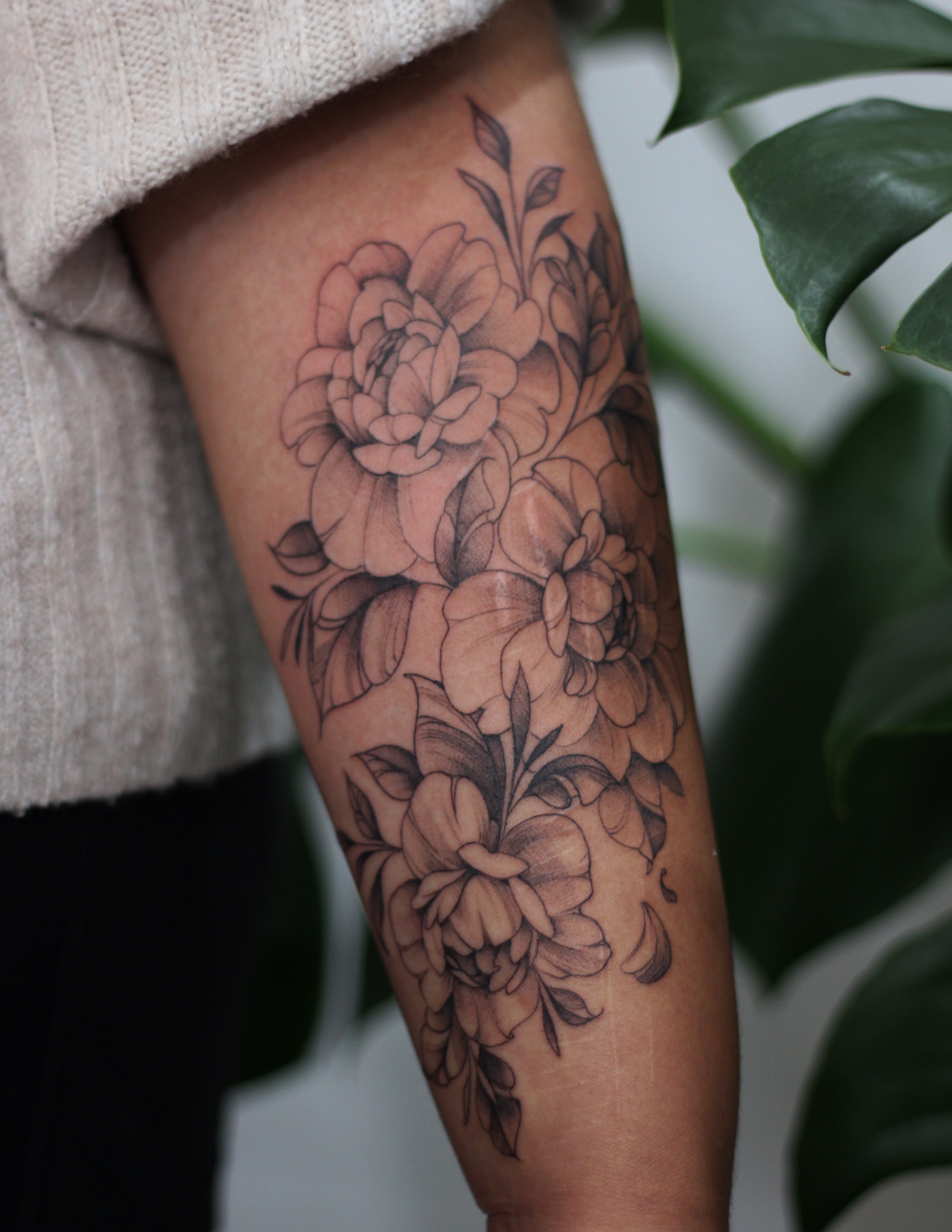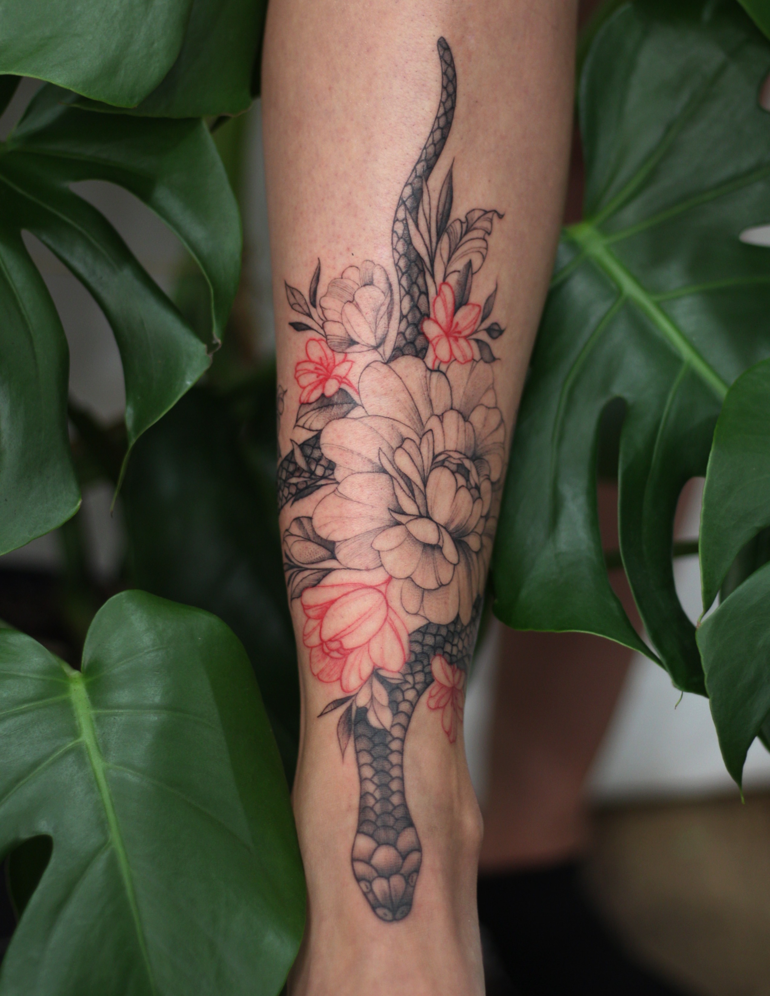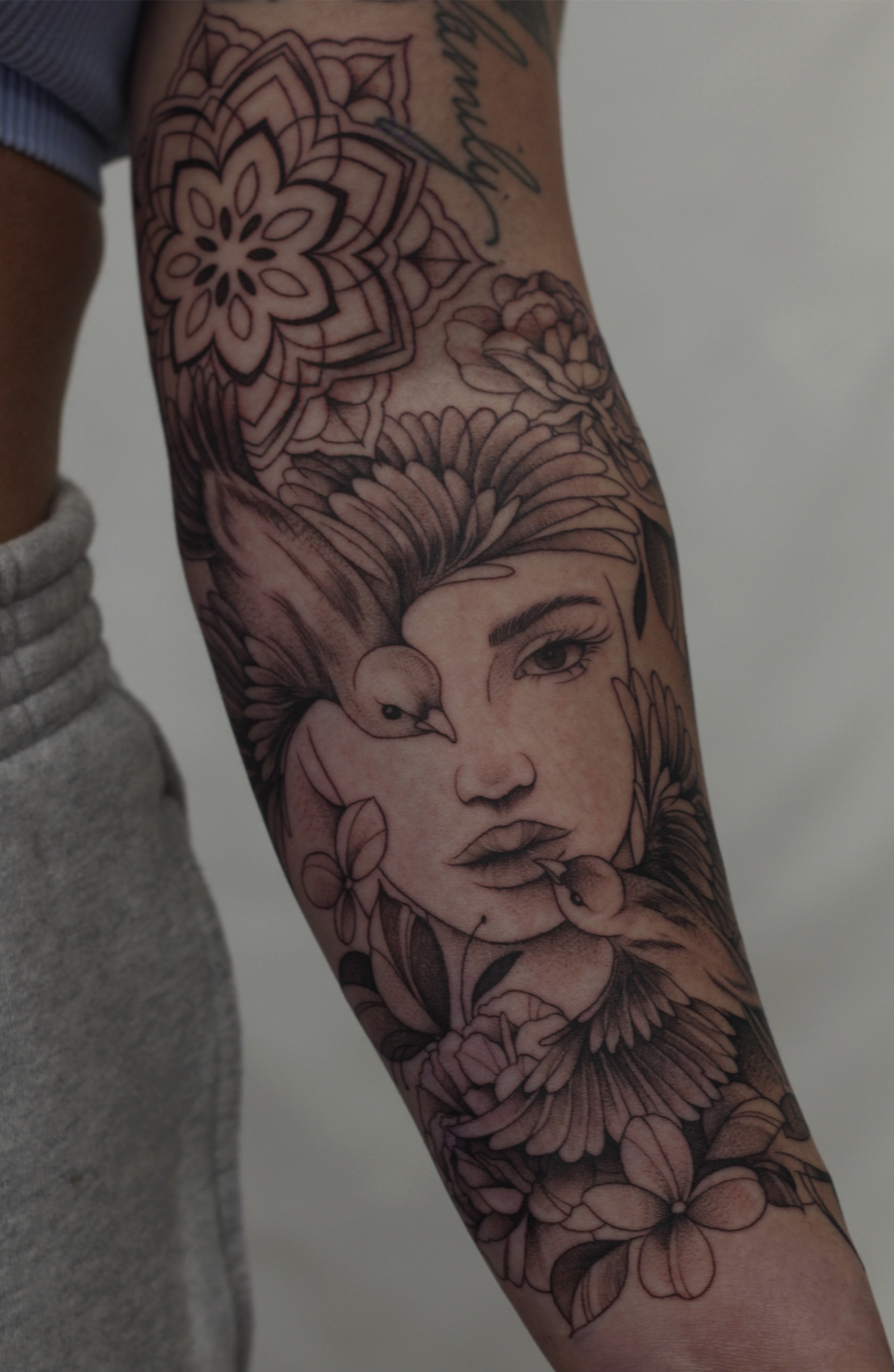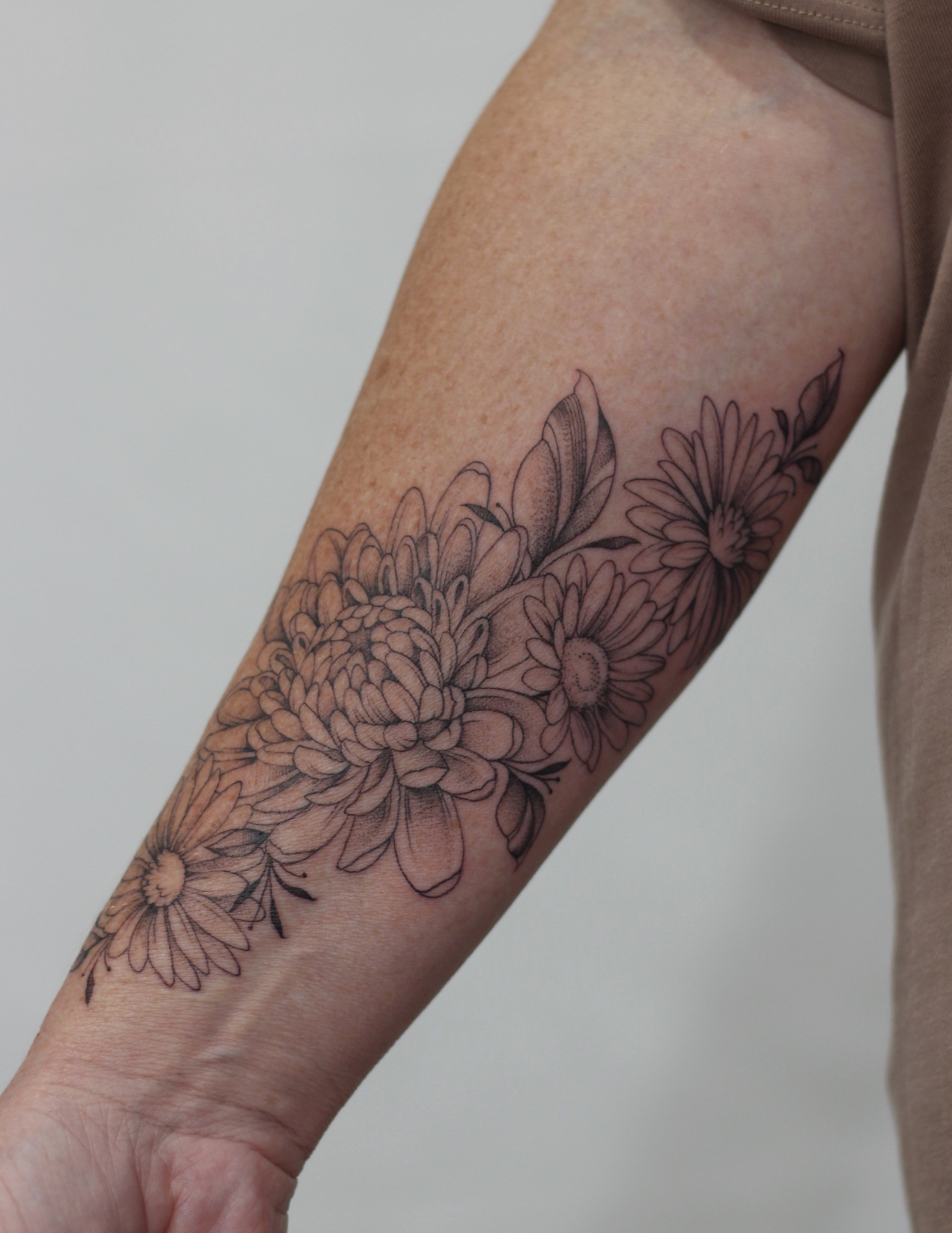 Katalina tattooed for seven years before becoming a co-founder of JUNGLE. She cultivated her skills and attention to detail as a pencil and paper artist for 8 years before she started tattooing fineline florals and dainty pieces. The quick transition from a sharp pencil to a tattoo machine gave her instant gratification that illustrations never could, and that was being able to take on new challenges and building strong relations with her clients. She brings her bright, feminine energy every day, pouring her essence into freehand flowers and fineline custom designs. Her creativity doesn't end outside of the studio. Her drive to try new things and express herself has extended into painting, crochet, embroidery and entomology. She's always looking forward to what will inspire her next.